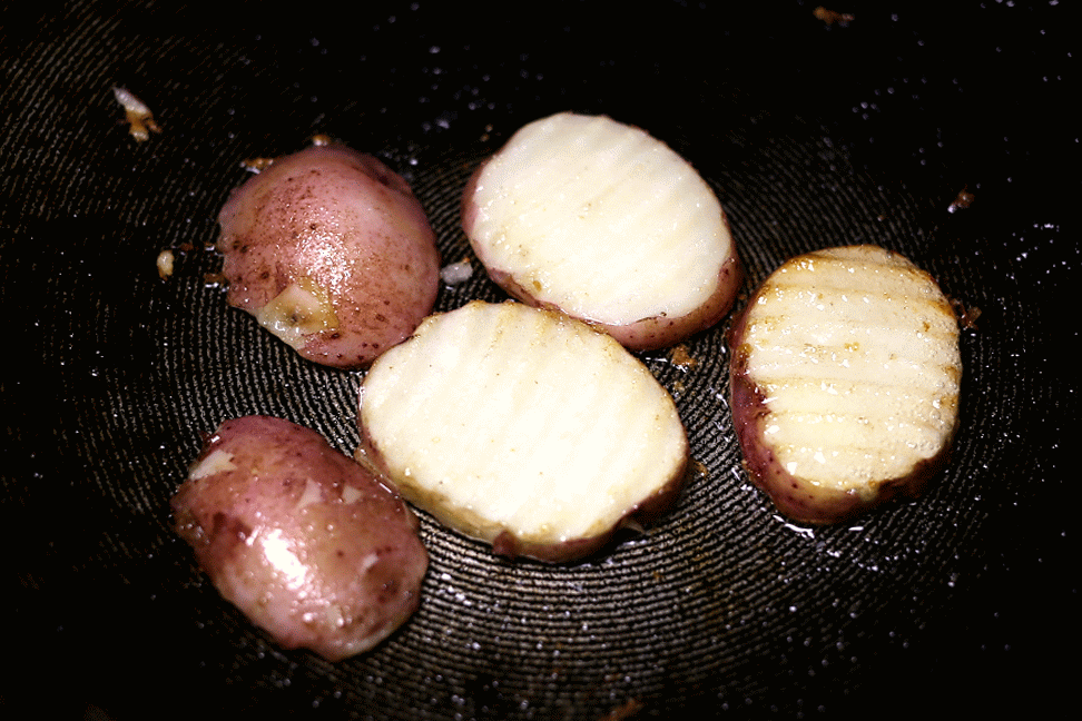 另外使用常用的平底鍋使用酪梨油煎出漂亮的馬鈴薯條文