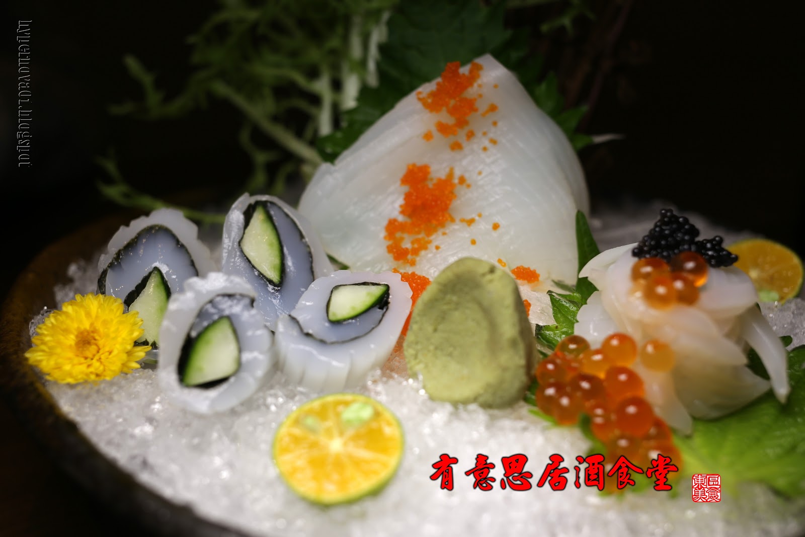 魚子醬、鮭魚卵搭配的花枝