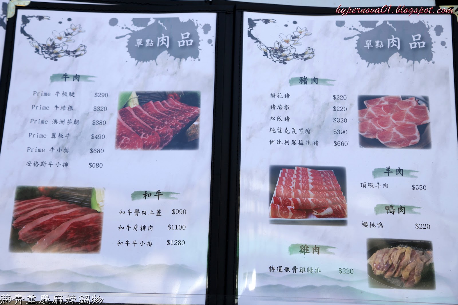 鍋物可以選擇套餐或者單點肉品
