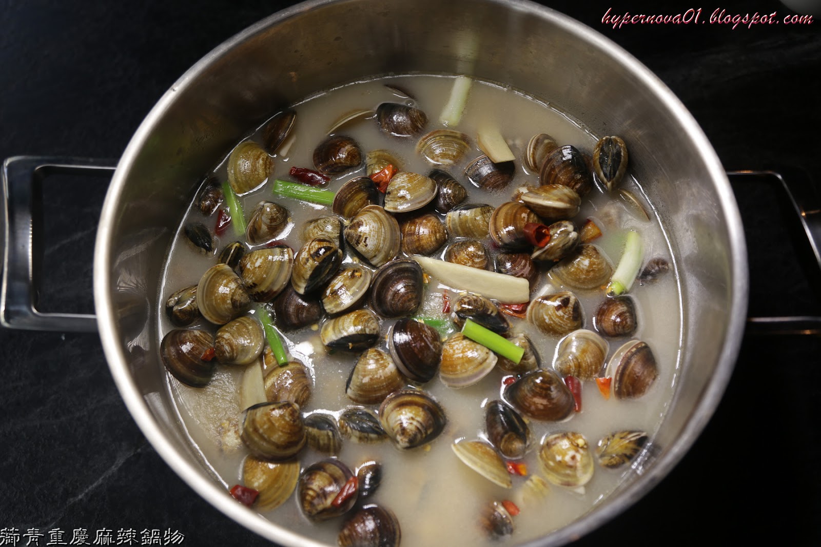 接著,我們將兩斤重的蛤蠣放入鍋中與魚高湯一起熬煮
