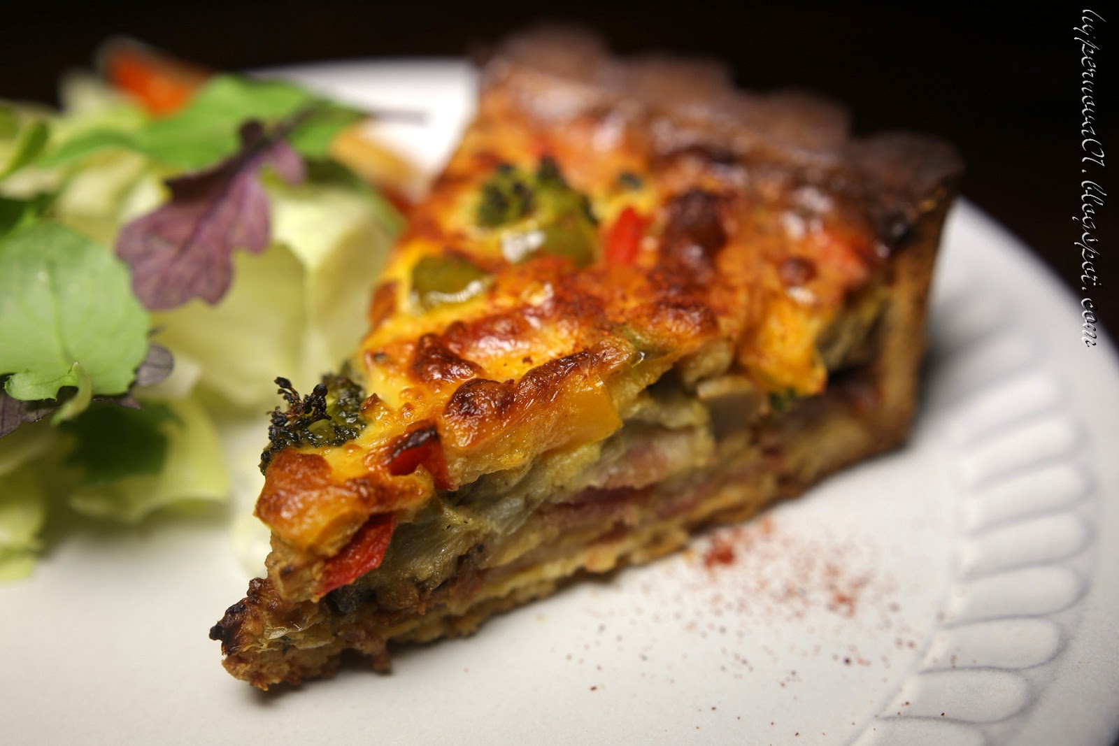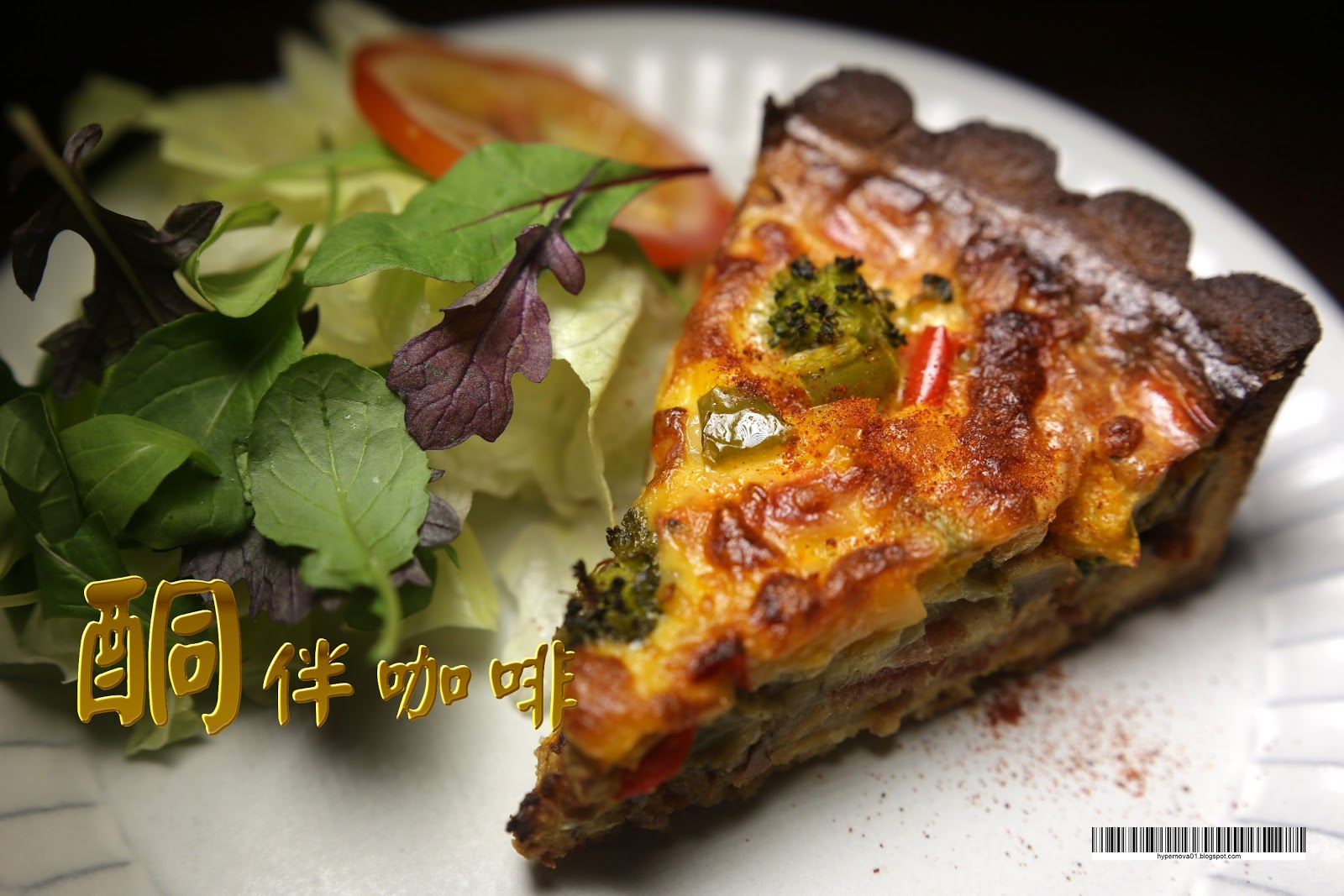 除了起司與乾番茄外還有洋蔥、洋菇、彩椒、花椰菜組成的鹹派