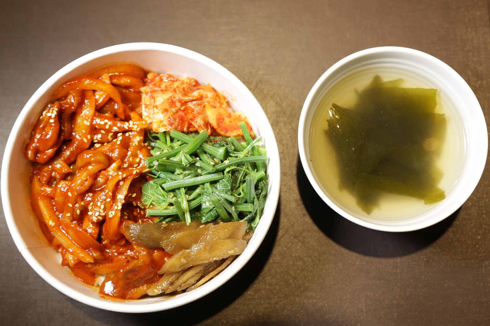 內有微辣的火辣雞、三種配菜另外外加一碗湯