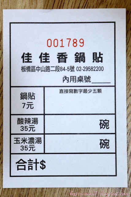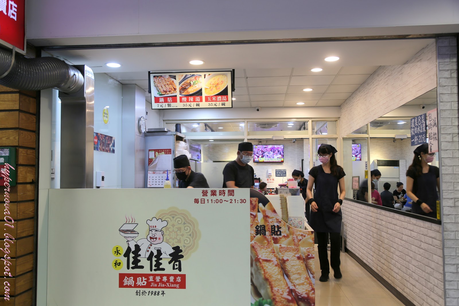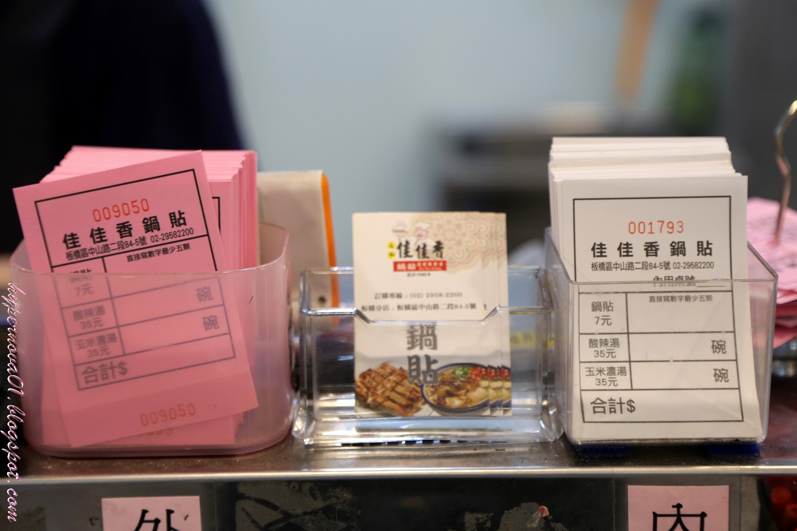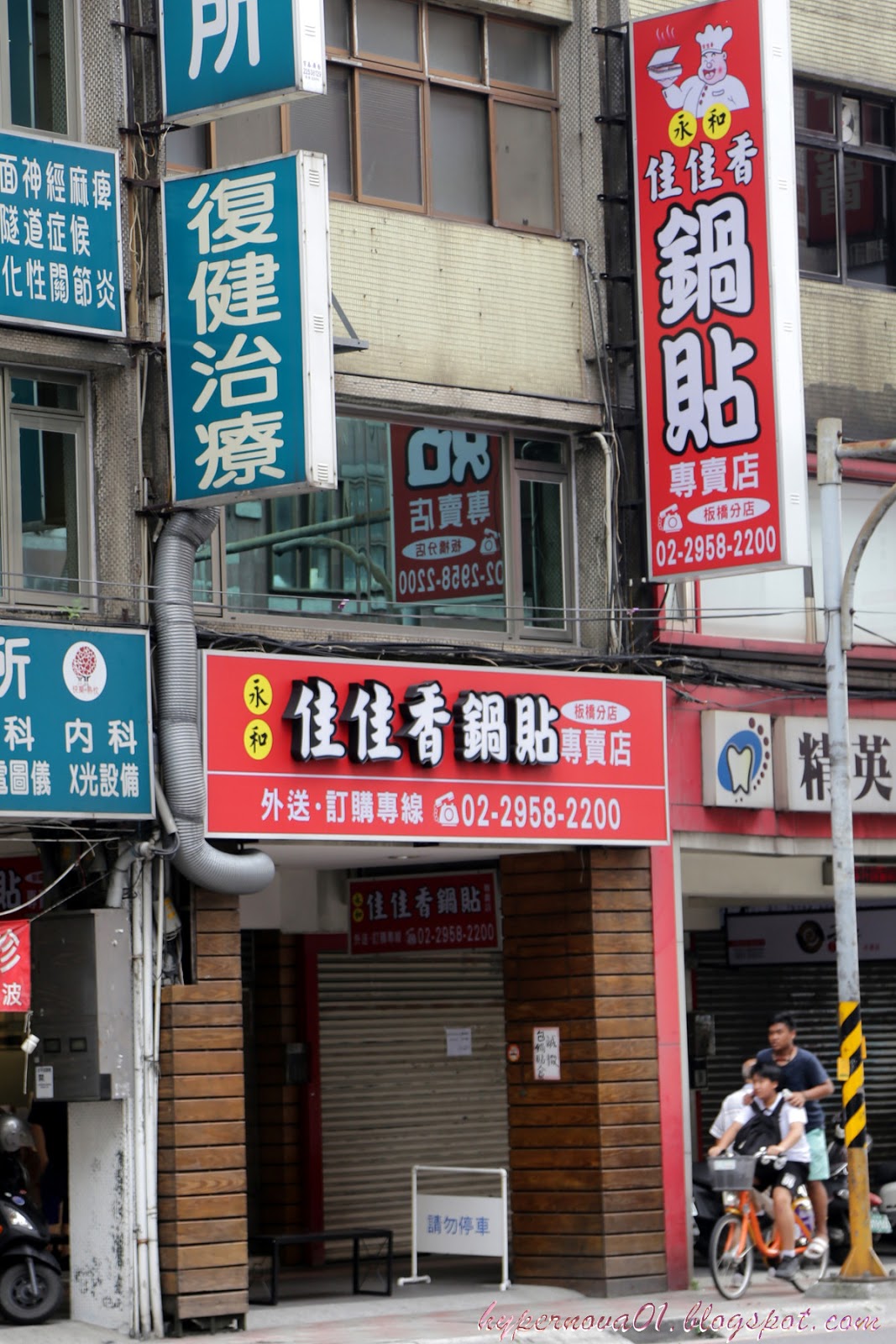 板橋中山路上靠近新北市板橋區埔墘國民小學的佳佳香鍋貼,來自於永和(就想到永和豆漿XD)