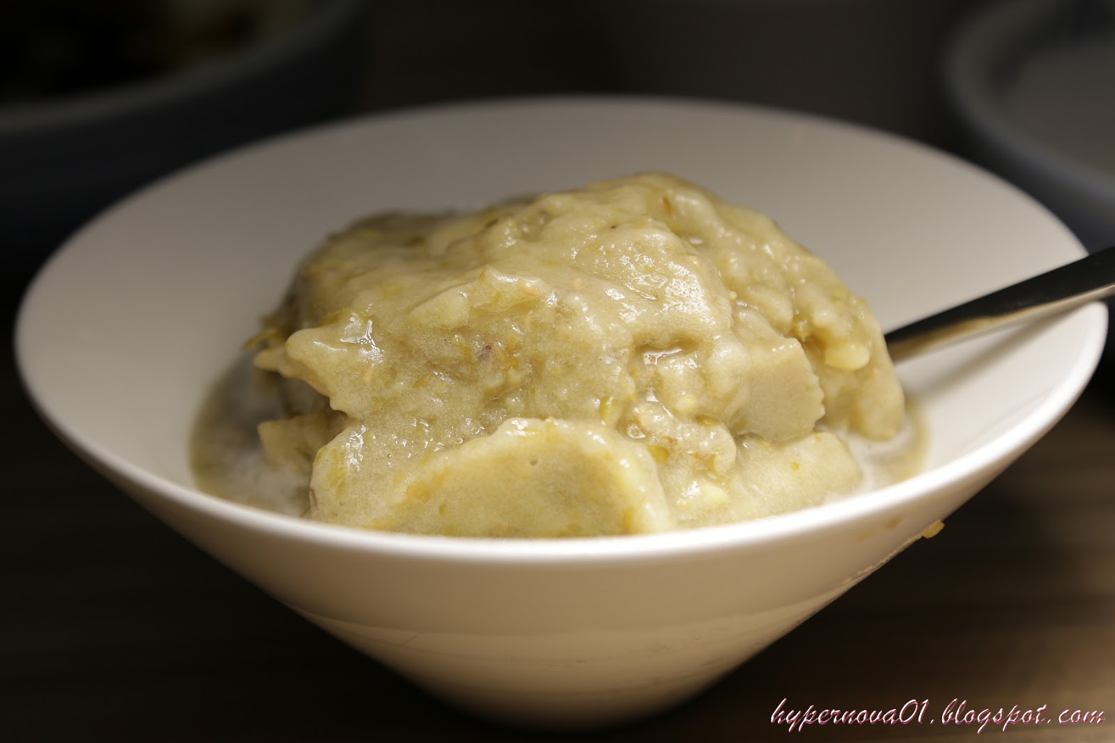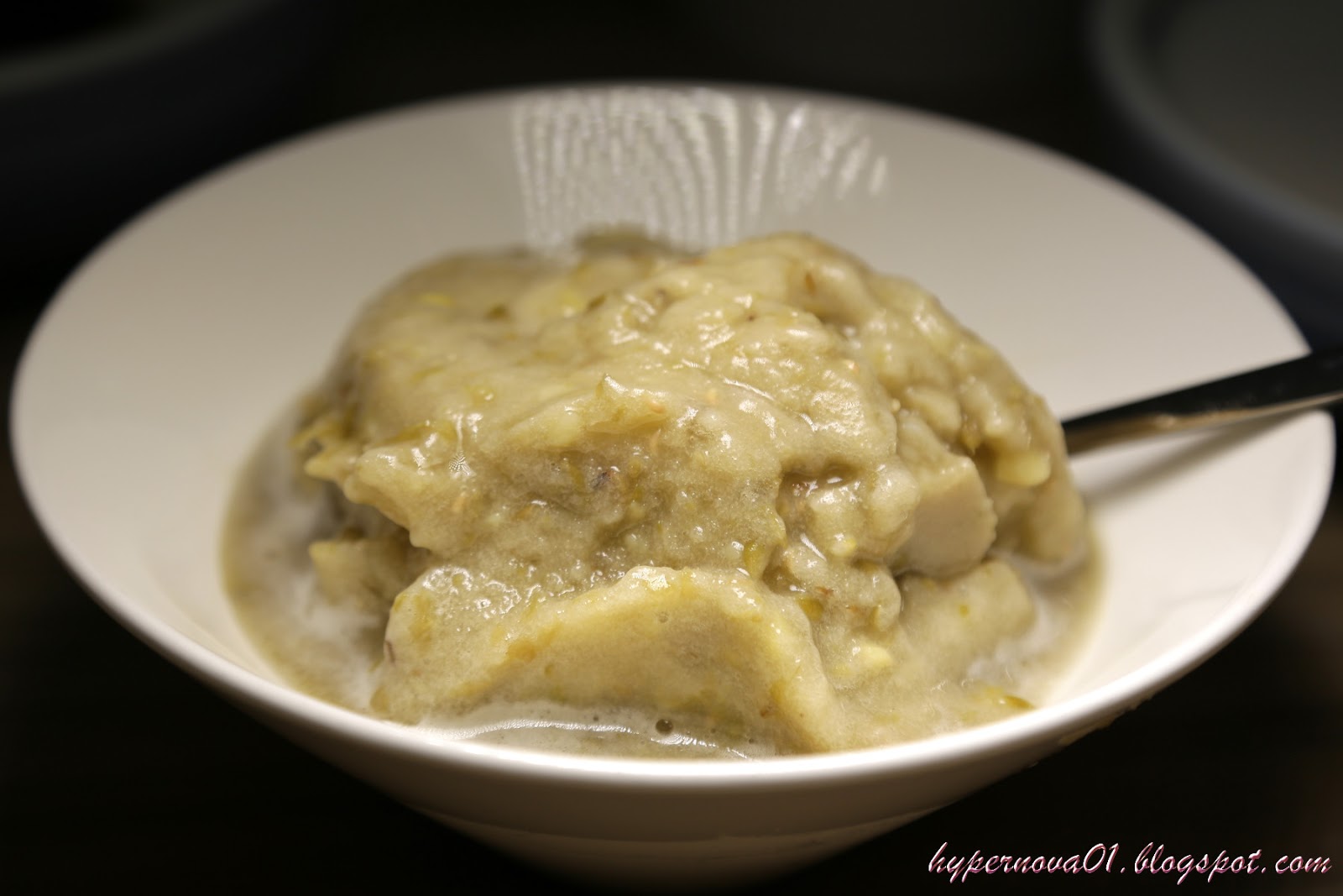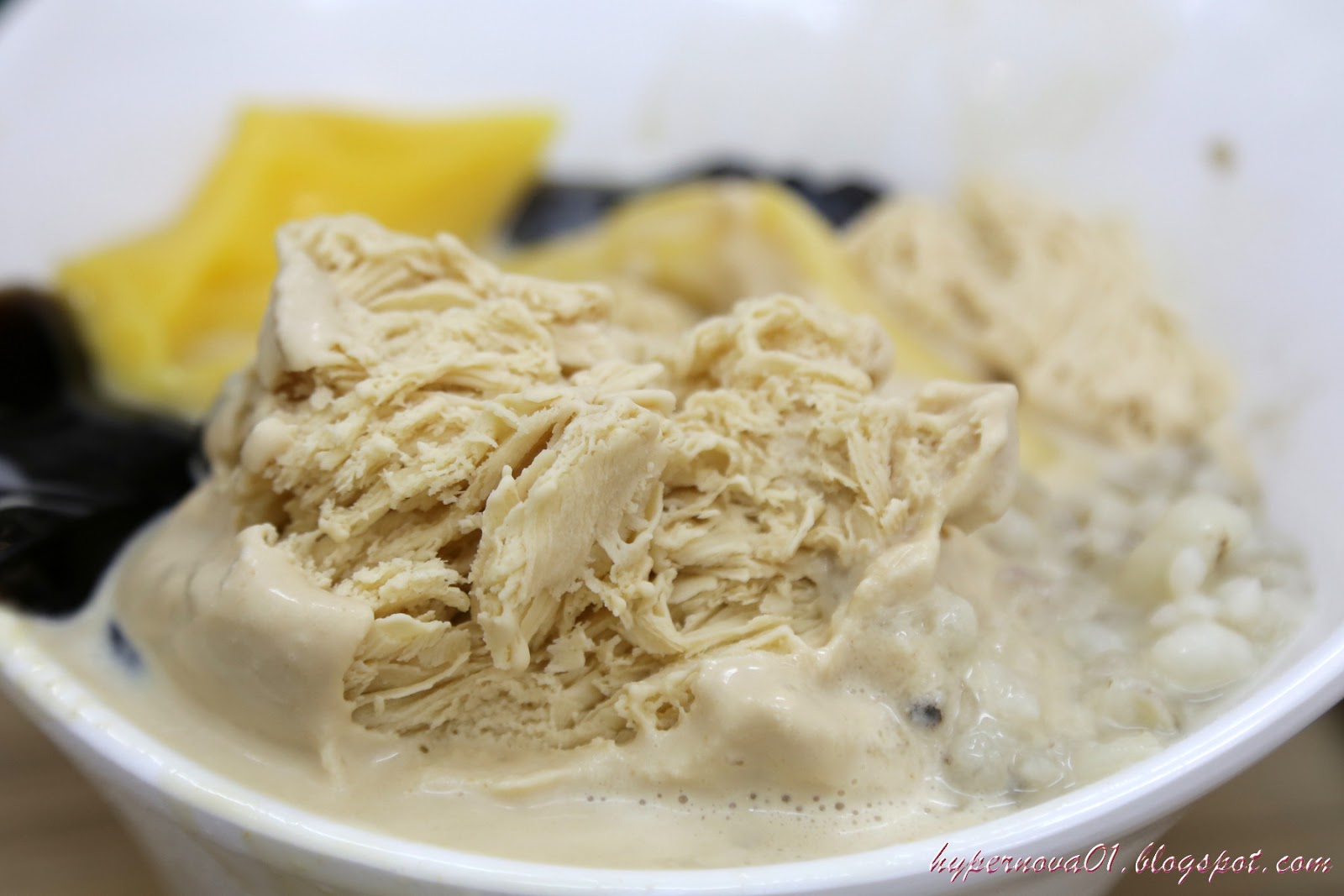 取而代之的是簡單的且濃郁的杏仁粉漿味,漂浮在上的杏仁豆腐輕輕咬下有一種蒟蒻了口感