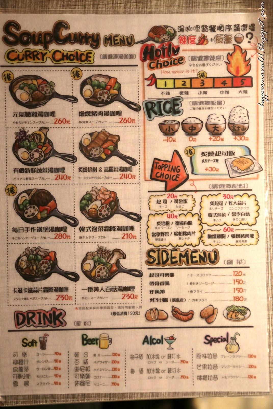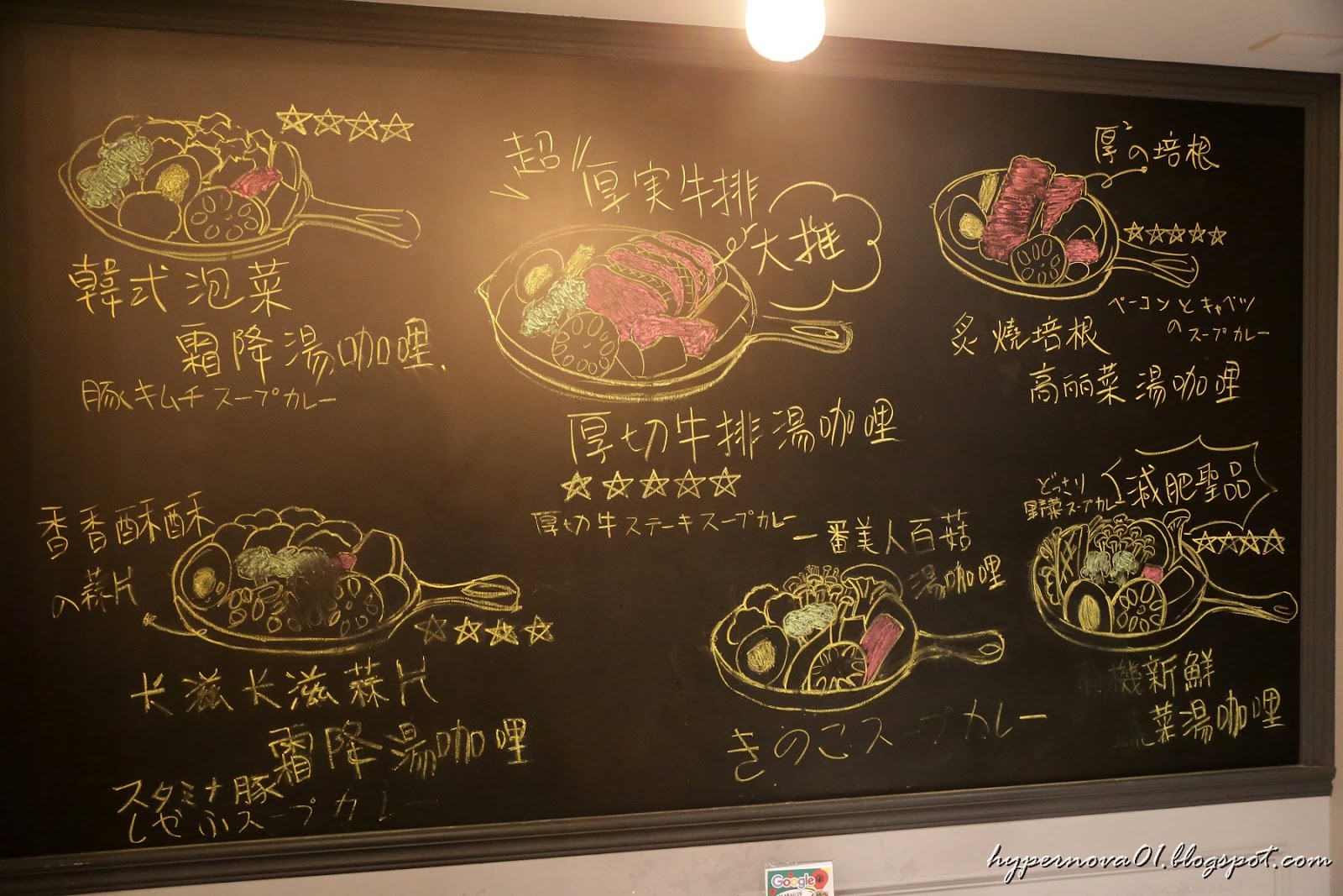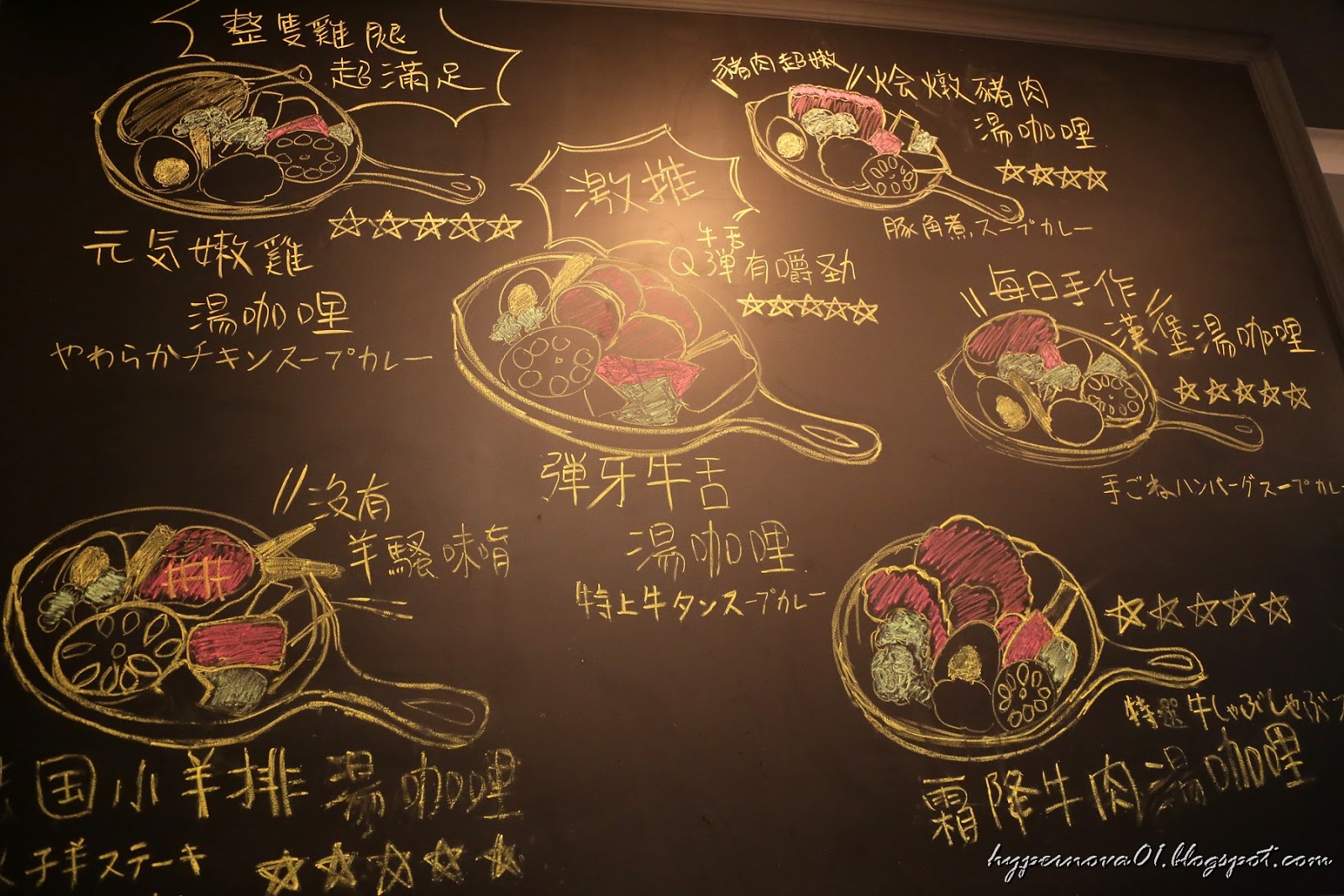 黑板上畫了不少各種咖哩的介紹完全是活的DM呢