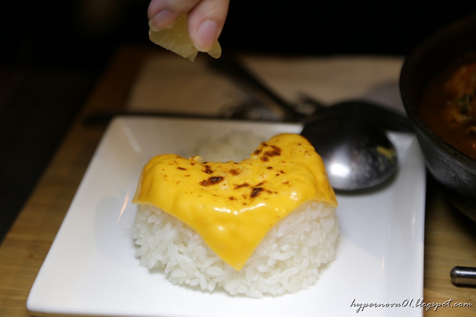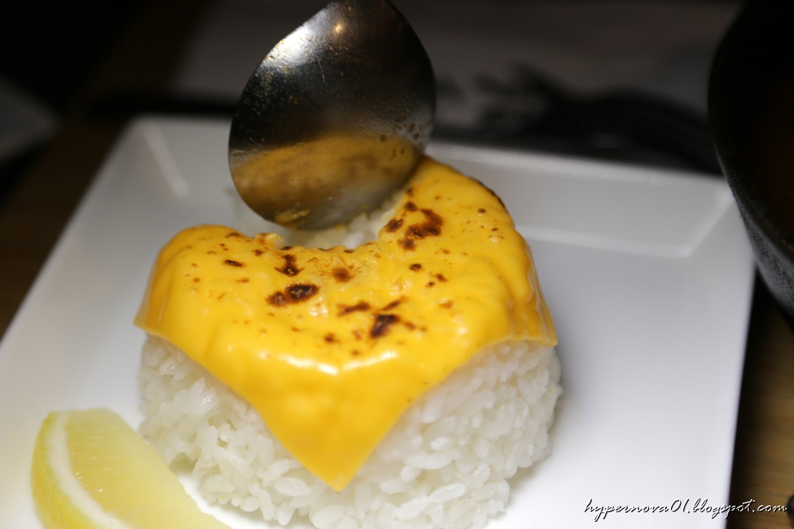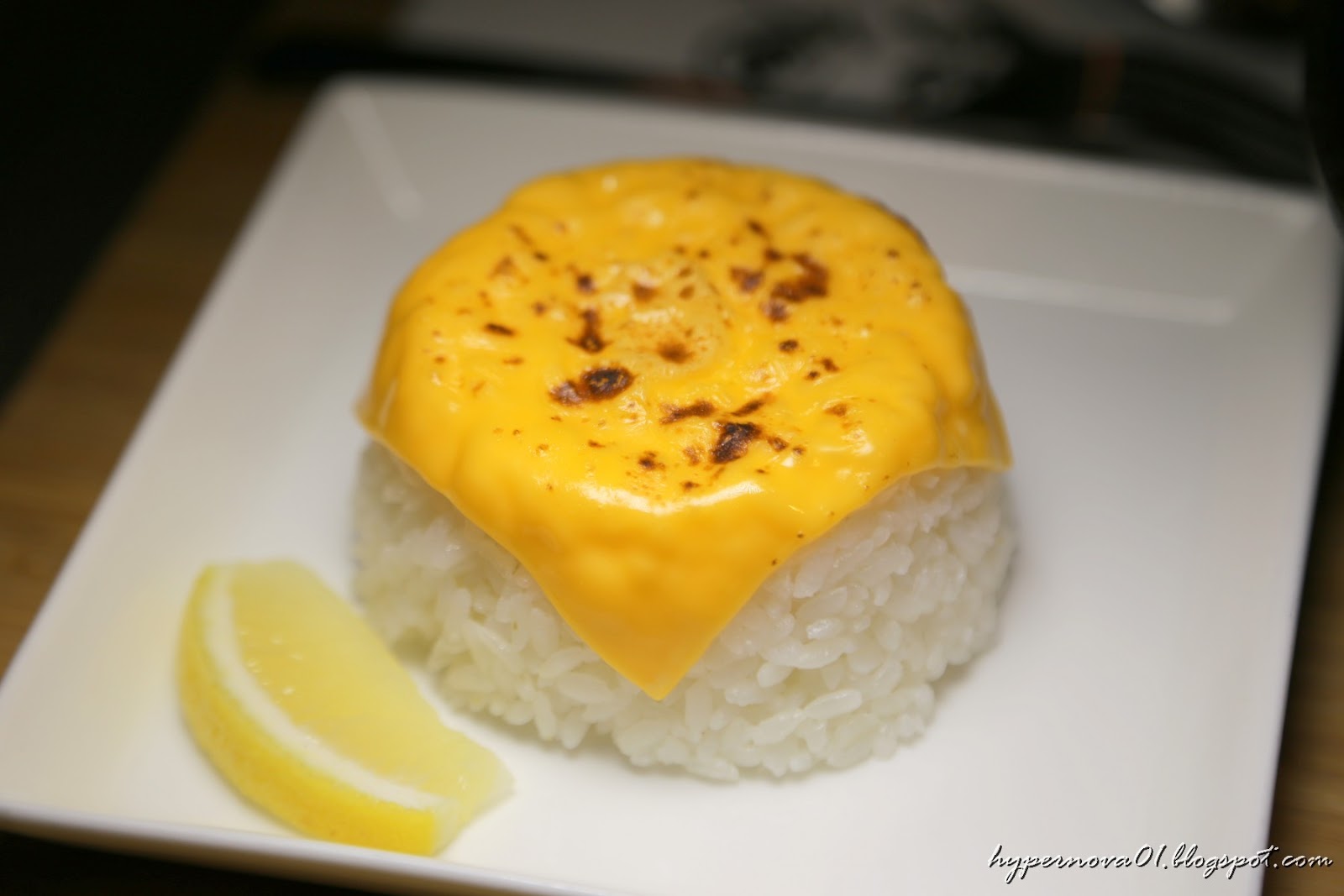 白飯放上一片炙燒起司看起來很有話題性