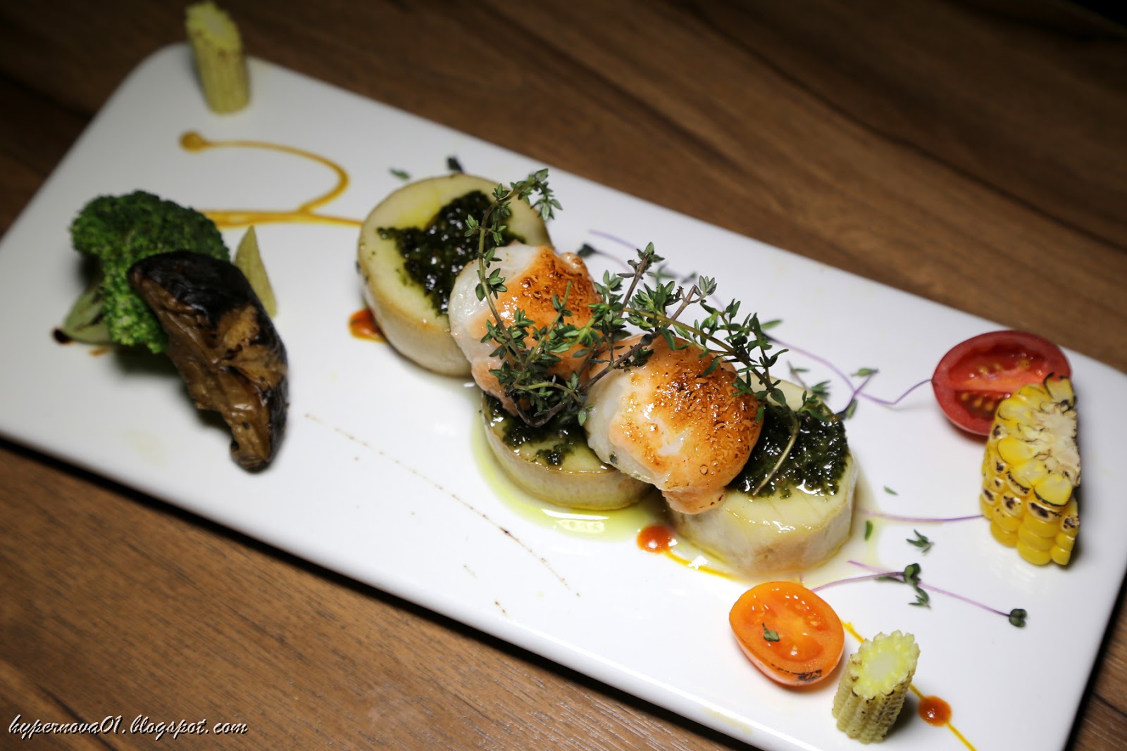 橫濱炙燒生食干貝杏鮑菇冷壓青醬沙巴庸