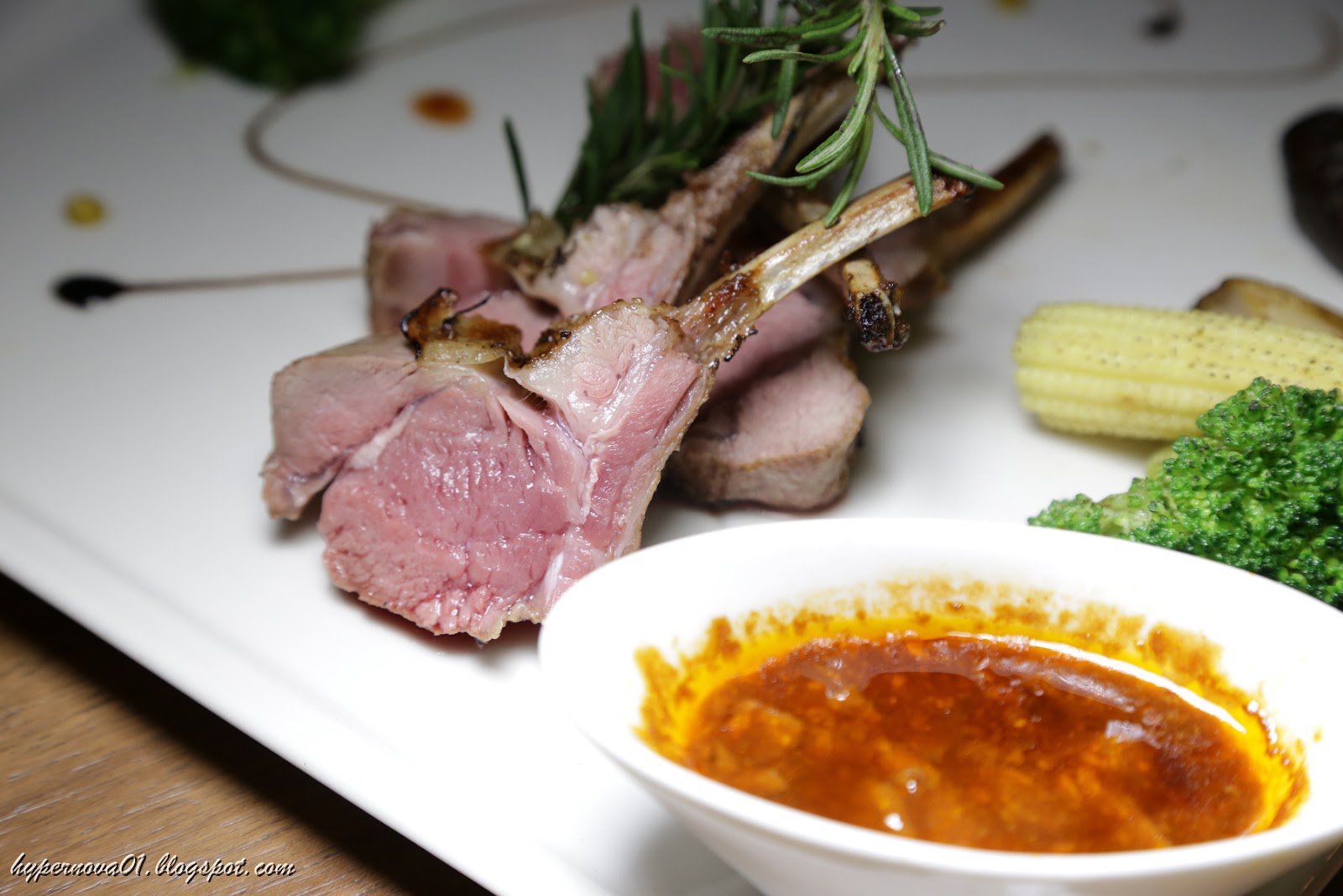 鮮嫩的小羔羊配上大量的烤蔬菜與鮮紅醬汁