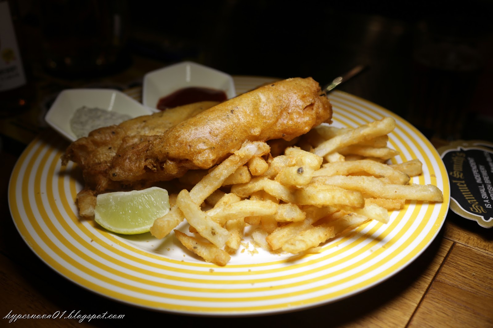 整片阿拉斯加鰈魚加上特製酒麵糊酥炸而成,顛覆傳統的一條又一條的魚薯條滋味