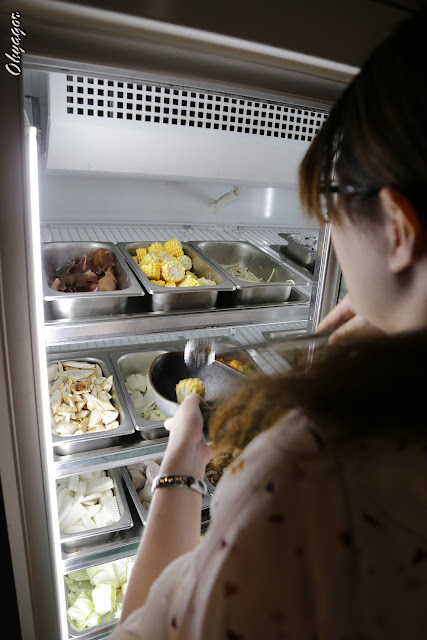自助區有沙拉、咖哩、燉肉、白飯、醬料完全自助