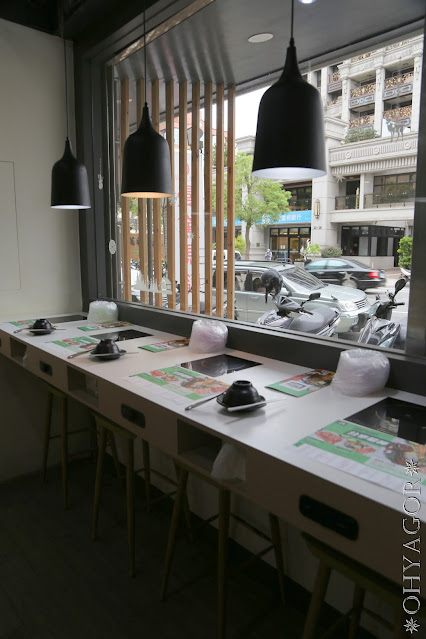 個人鍋傾向靠窗的吧檯區域