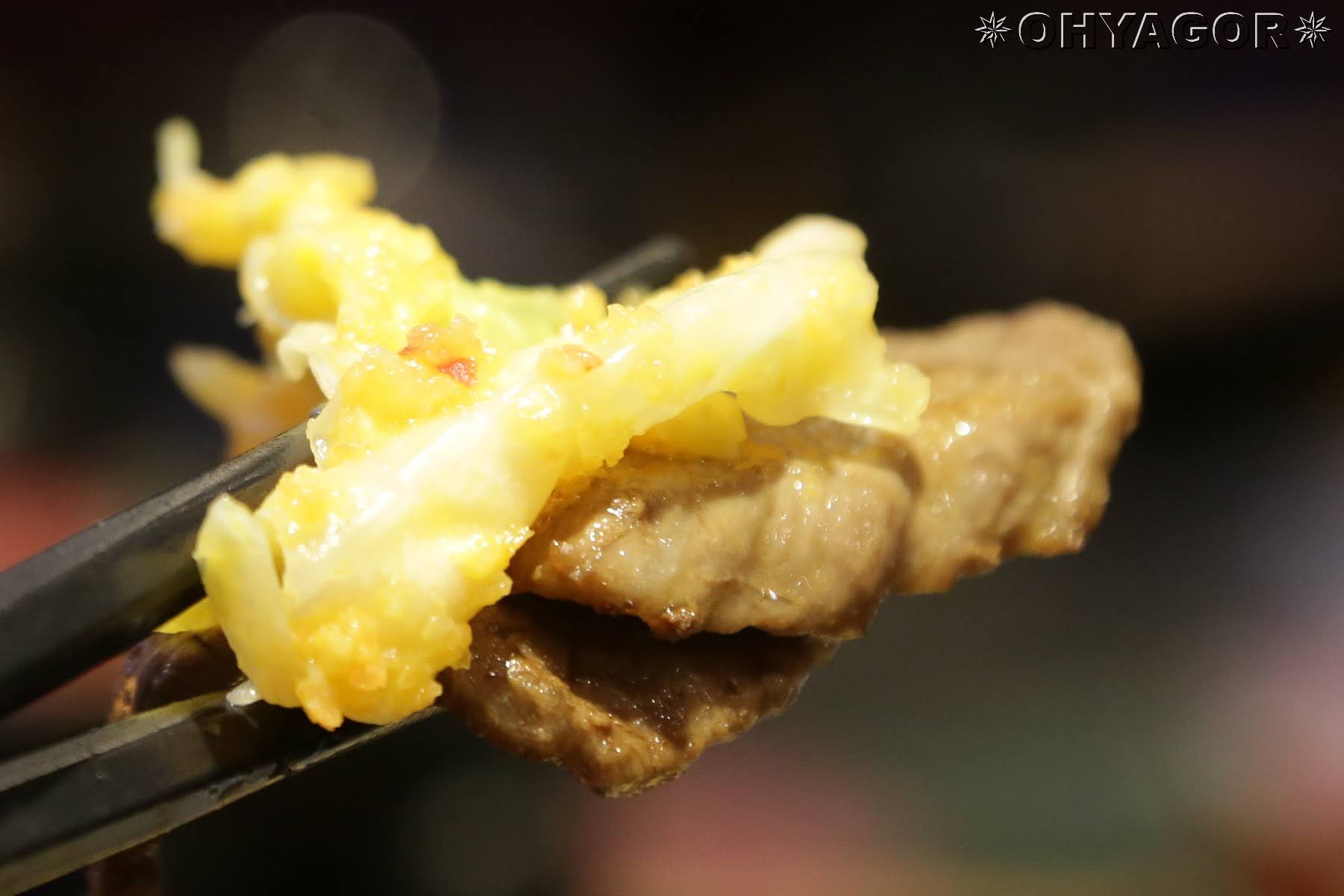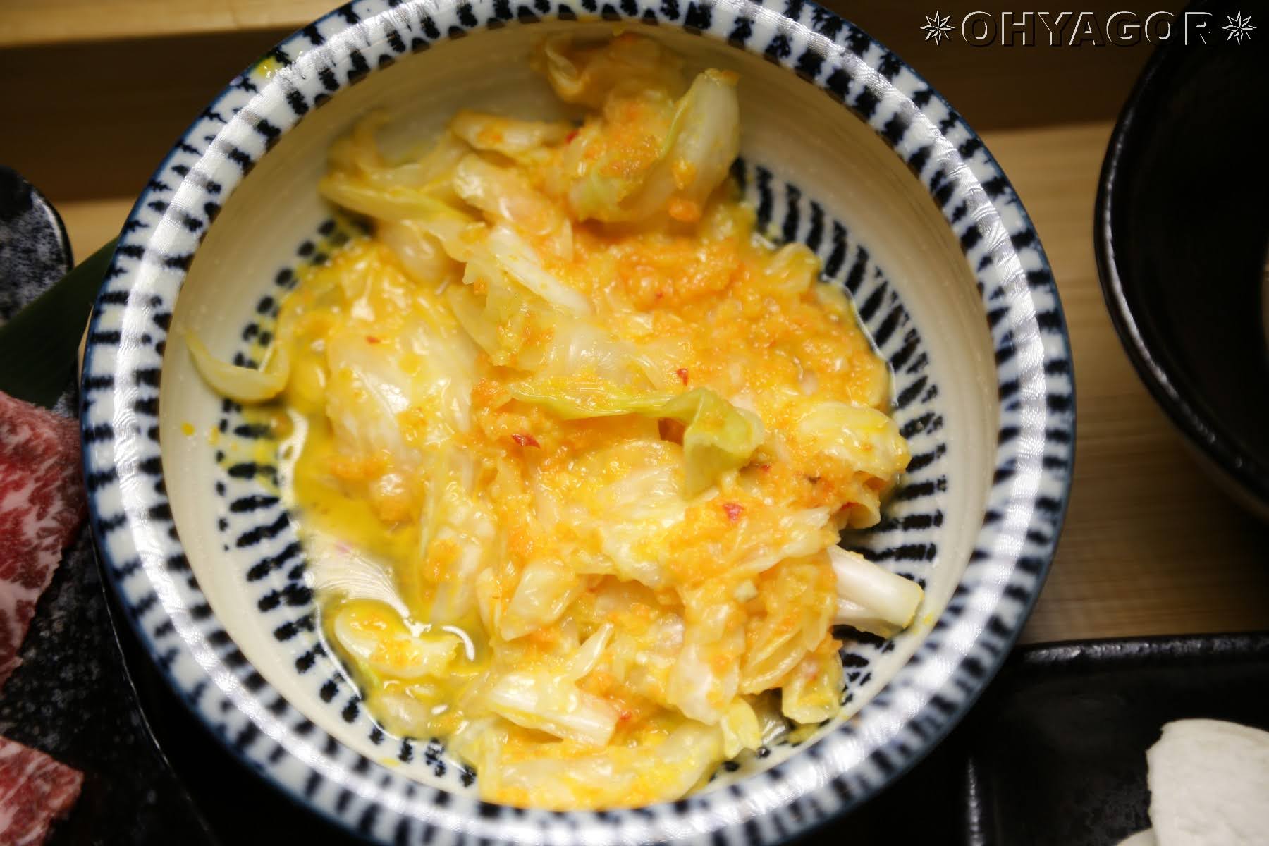小菜為黃金泡菜,可以直接吃也可以搭配燒肉一起吃
