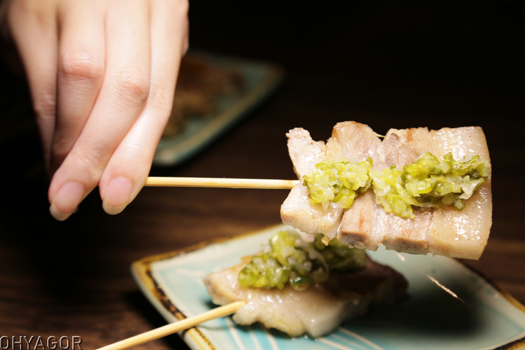 肥厚均勻的五花豬配上鮮綠的蔥鹽真讓人控制不住迸發的食慾