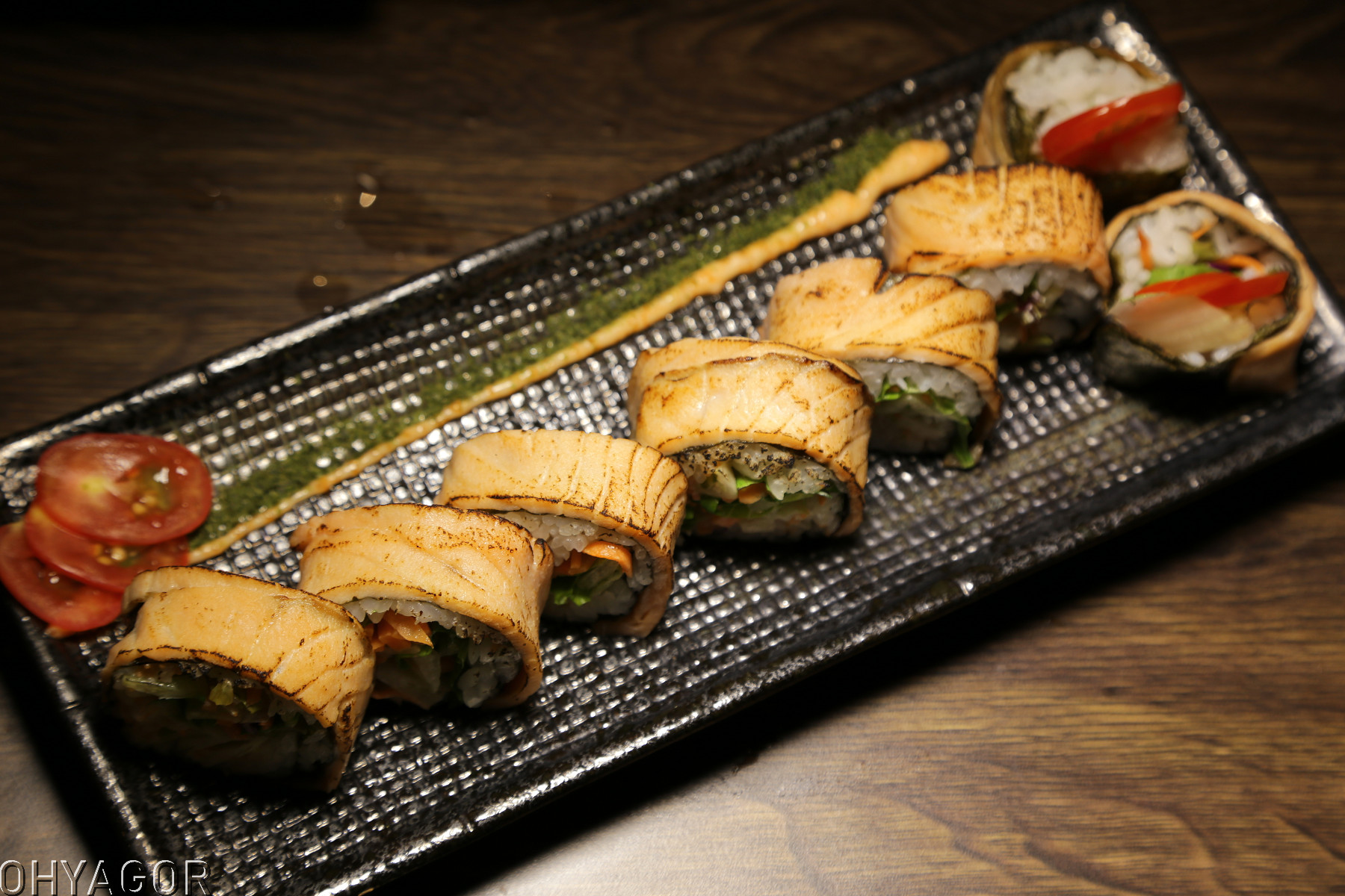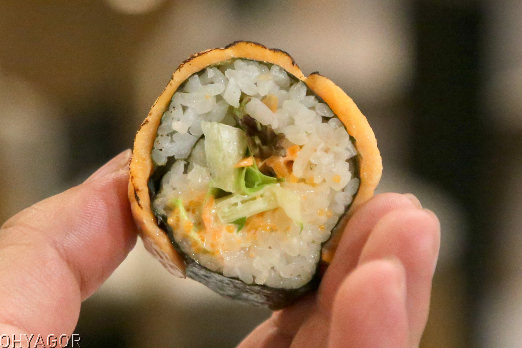 包裹了海苔、生菜與魚卵,口感清爽不膩口