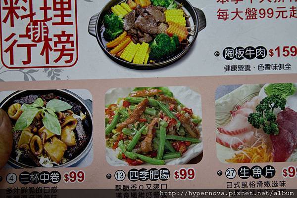 菜單,每道菜大都是99元,除非是特殊的菜非99特區
