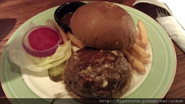 這份是芝心牛肉堡NT230,我選用黑麥麵包+薯條+肉汁沾醬+可樂,牛肉超厚實的咬開會有起司飛出來打人!!!注意大口咬下會燙的。黑麥麵包的香味搭配洋蔥、番茄美為無法抵擋!但之前An Burger推出101漢堡比較適合我的味口,這份量對我來說只能是入門款,大胃王要吃就要挑戰101漢堡!
