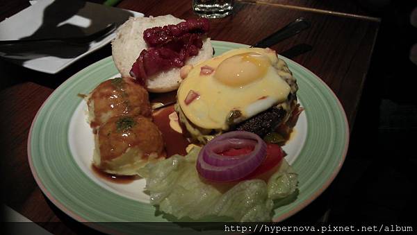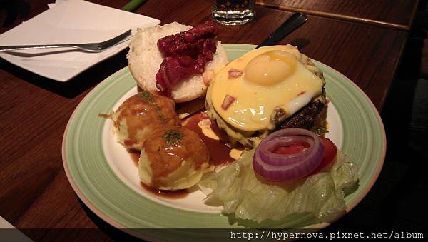 天使漢堡NT240,好像蠻多人推的。朋友都點了三分,有一塊漢堡排+會爆漿的太陽蛋+培根+起司醬,吃起來超犯規的,連我都想在點這道。馬鈴薯泥,吃起來綿密,搭配淋醬突顯馬鈴薯的鮮甜美味。生菜沙拉吃起來很順口,可惜我這個野蠻人就是喜歡大口咬下!