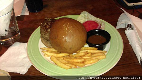 店內的裝潢擺飾,很有美式傳統情調但少了一點痞味(?)不過,細心的觀察結果還是有點重車的拓荒風格,配點前菜聊天好滋味。前有電視,內容大都與運動項目相關,若是足球賽事吃美式餐廳應該很過癮吧!