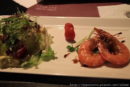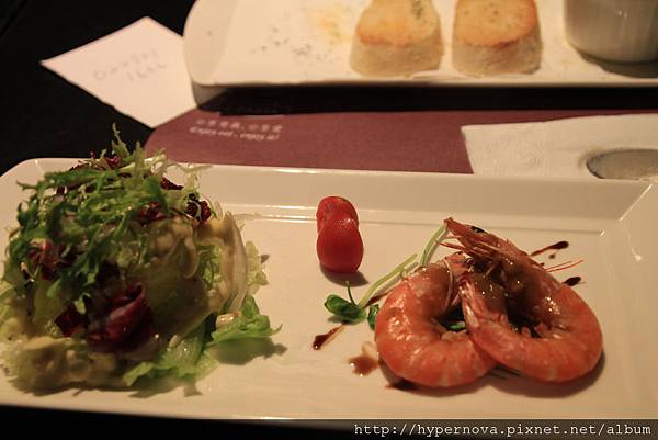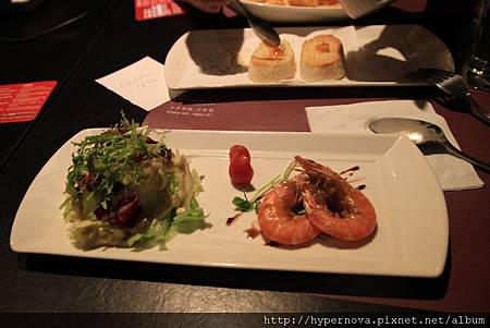 前菜沙拉,有蝦子(先前網友寫的網誌似乎沒有蝦子,算是我比較好運嗎?)