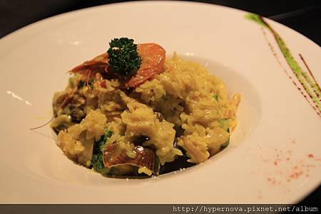 這是小編點的鬱金香海鮮燉飯,單點NT250。內有海鮮:蝦子、蛤蠣、花枝。搭配花野菜吃起來脆脆的,飯屬於長米吃起來是燉飯口感比較硬,整體味道很香咖哩但味道沒有這麼重的香料,給人比較輕鬆的感覺。