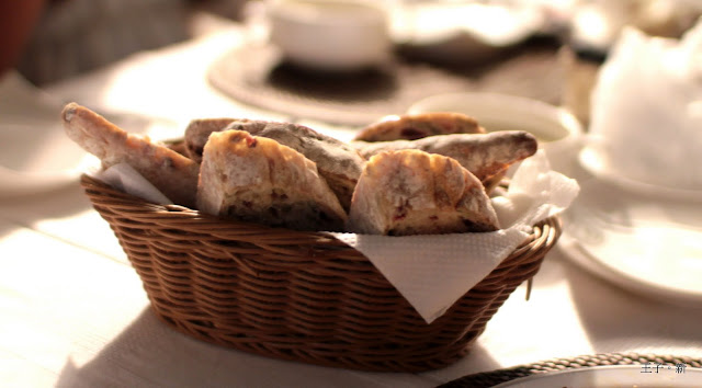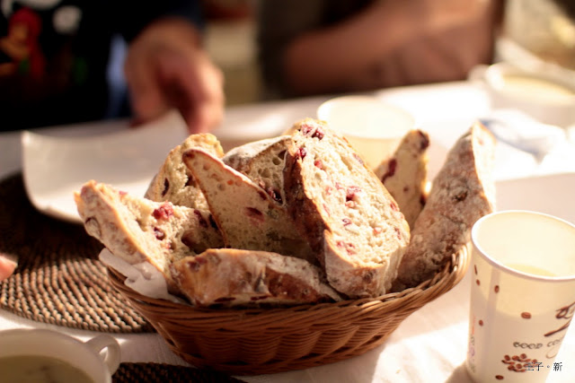 雜糧麵包,裡面有葡萄、蔓越莓、堅果,帶有淡淡的鹹味吃起來鬆脆爽口,不到兩分鐘麵包都被掃光光!!!