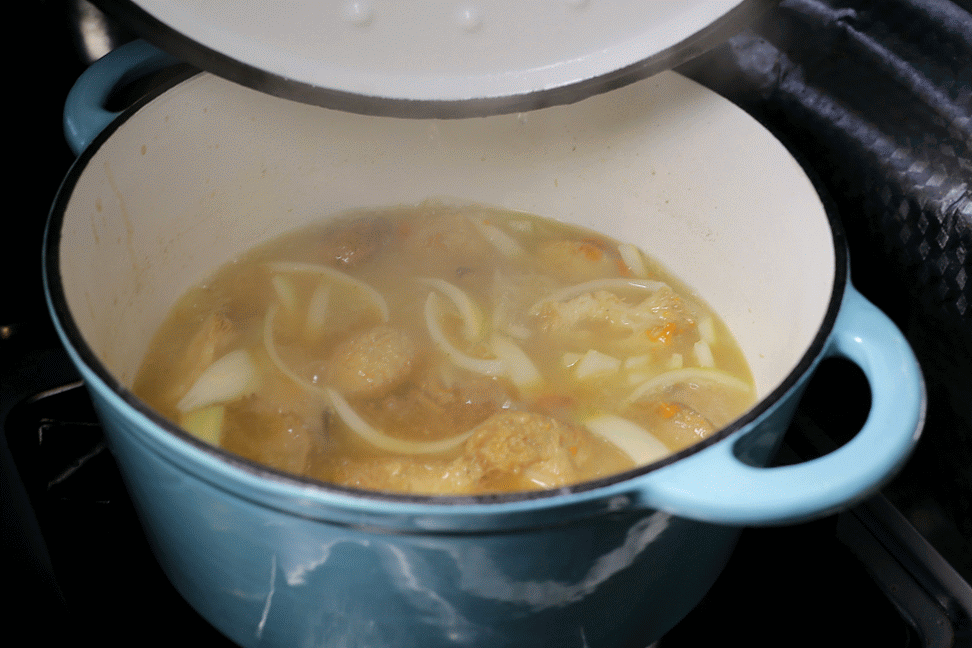 雞腿肉可以在鑄鐵鍋的保溫下燉煮省能源更鎖住湯頭的原汁原味!