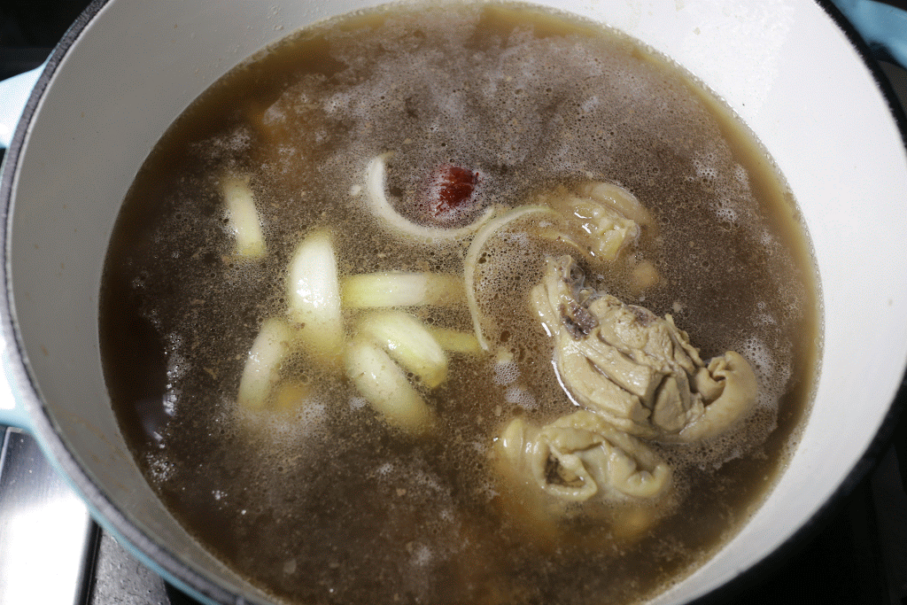 接著放入中藥湯底與剛才拌炒的洋蔥混合,種種野味完全融入