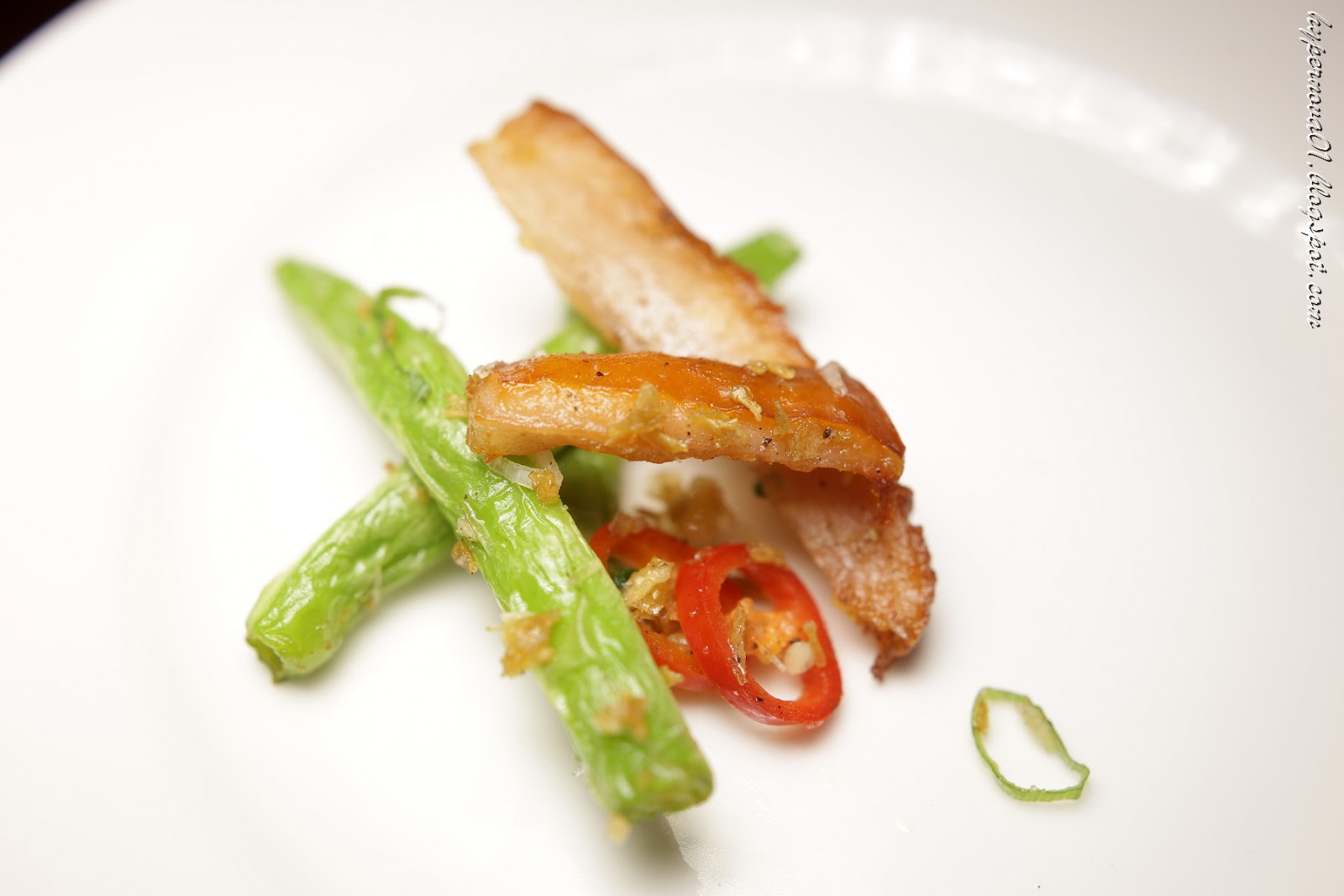 先一口酥脆得非常在配上甘甜四季豆咀嚼後鹹酥香四溢尾韻的四季豆有一種清爽鮮甜起承轉合完美收場