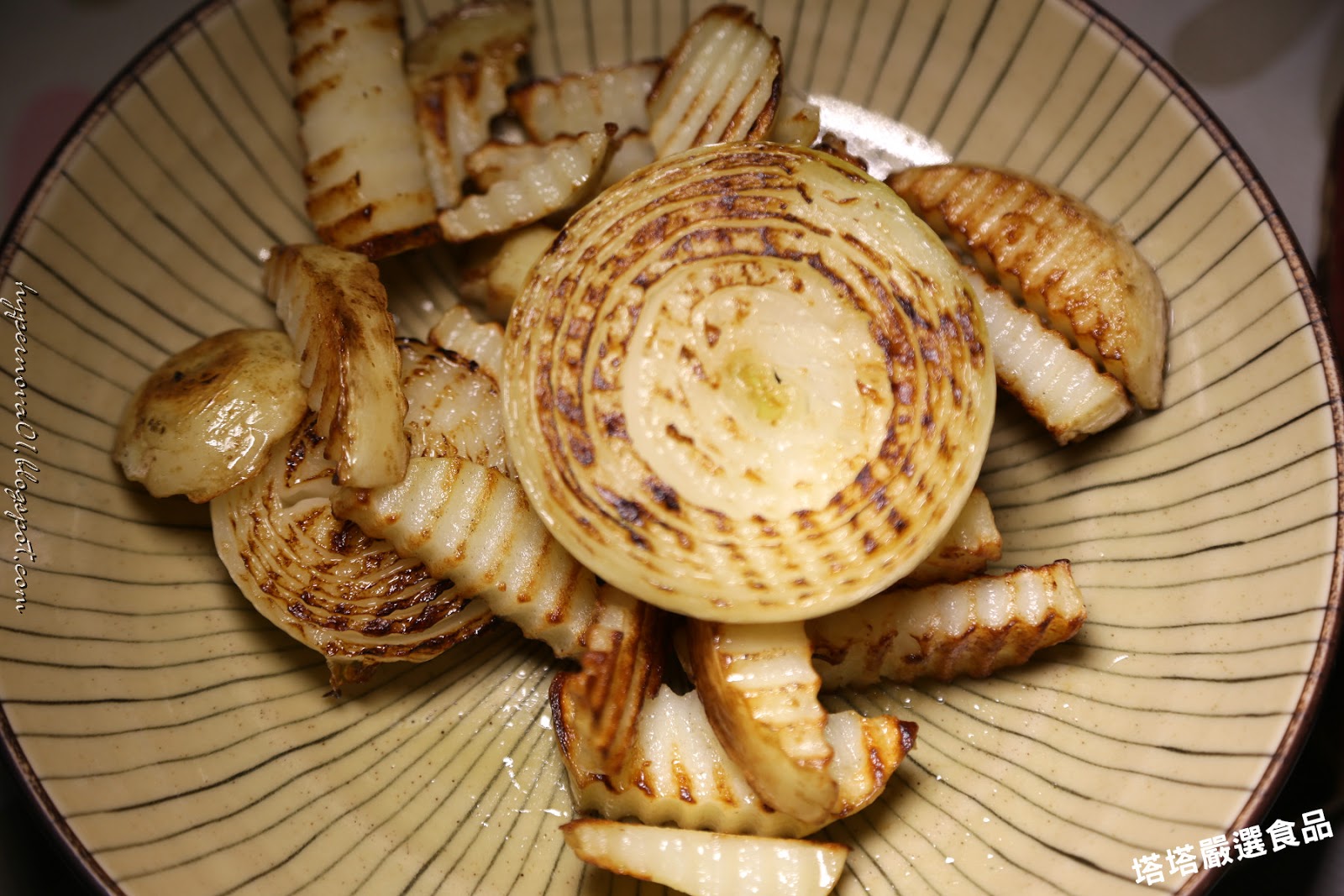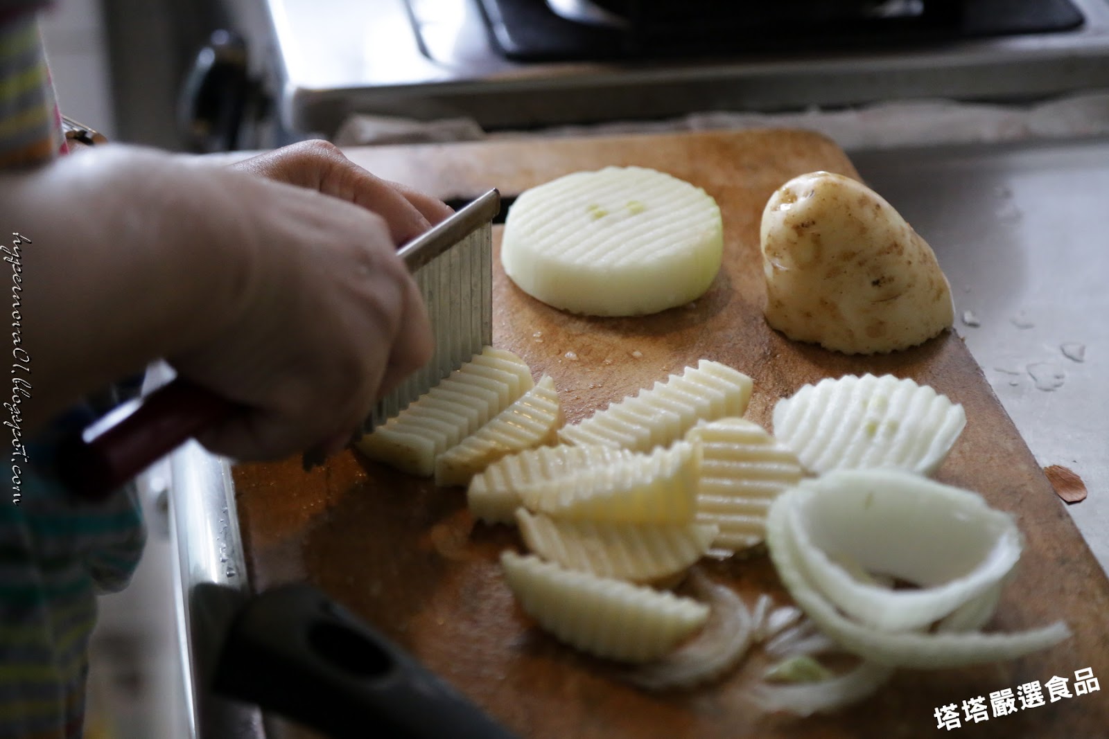 首先洋蔥、馬鈴薯切成波浪狀