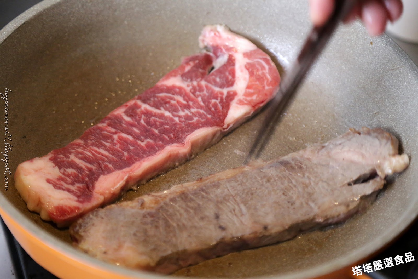 接著利用前面煎出的香油在煎烤翼板牛