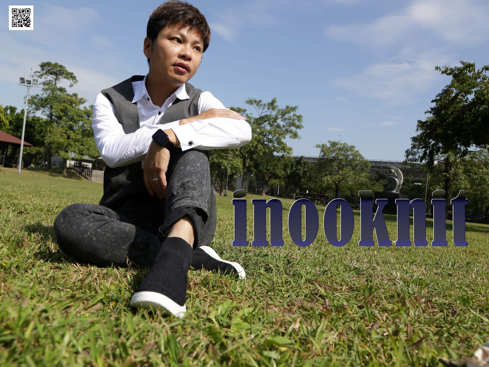 inooknit襪鞋款針織鞋 視覺變幻中筒襪鞋/黑-浪潮波紋